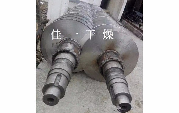 (2)轉(zhuǎn)子:整臺(tái)干燥機(jī)的承載部分,由一根中空軸和一組中空的圓盤組成。為提高圓盤的堅(jiān)固性,空心內(nèi)腔按環(huán)形布置幾組支撐桿。在圓盤的外邊緣裝有推進(jìn)器/攪拌器,同時(shí)起到推進(jìn)和攪拌物料的作用。