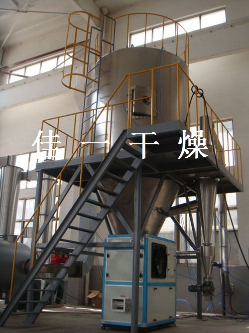 高速離心噴霧干燥機是液體工藝成形和干燥工業(yè)中廣泛應用的工藝。適用于從溶液、乳液、懸浮液和糊狀液體原料中生成粉狀、顆粒狀固體產品。因此,當成品的顆粒大小分布、殘留水份含量、堆積密度和顆粒形狀必須符合精確的標準時,噴霧干燥是一道十分理想的工藝。